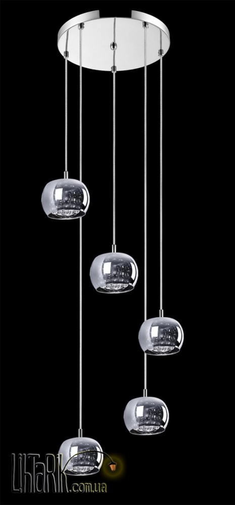 Подвесной светильник Zuma Line P0076-05M-B5FZ- это эксклюзивный светильник коллекции CRYSTAL. Подвес из хромированного металла и стеклянных плафонов, которые дополнительно украшены кристаллами.