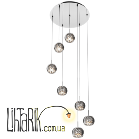 Подвесной светильник Zuma Line P0076-07M-B5FZ - это эксклюзивный светильник коллекции CRYSTAL. Подвес из хромированного металла и стеклянных плафонов, которые дополнительно украшены кристаллами.