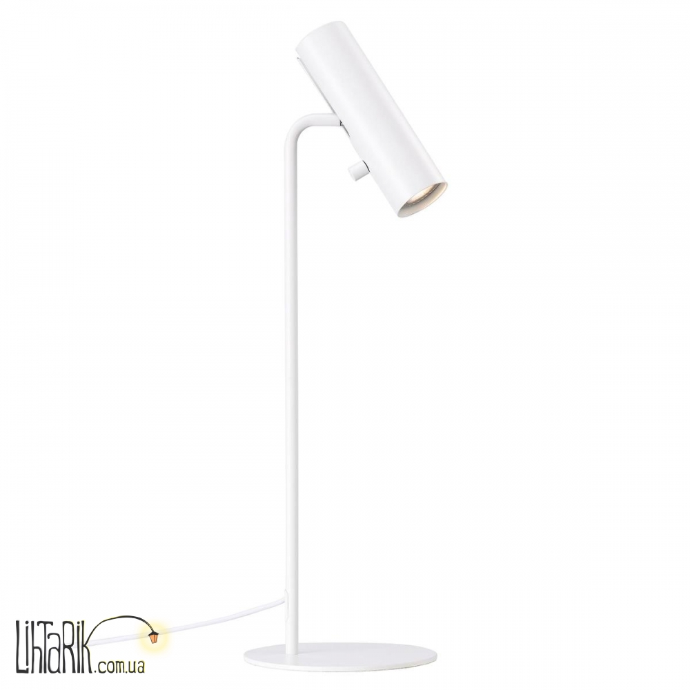 Этот настольный светильник бочковидного вида впишется в любую дизайнерскую среду. Модель представлена в белых тонах. Светильник изготовлен из металла высокого качества