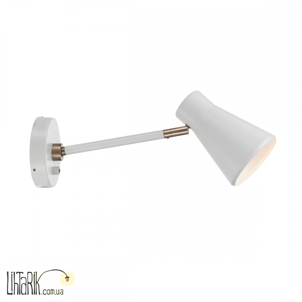Светильник на стену, Направленный светильник конусообразной формы впишется в любую дизайнерскую среду. Модель представлена в белых тонах. Светильник изготовлен из металла высокого качества
