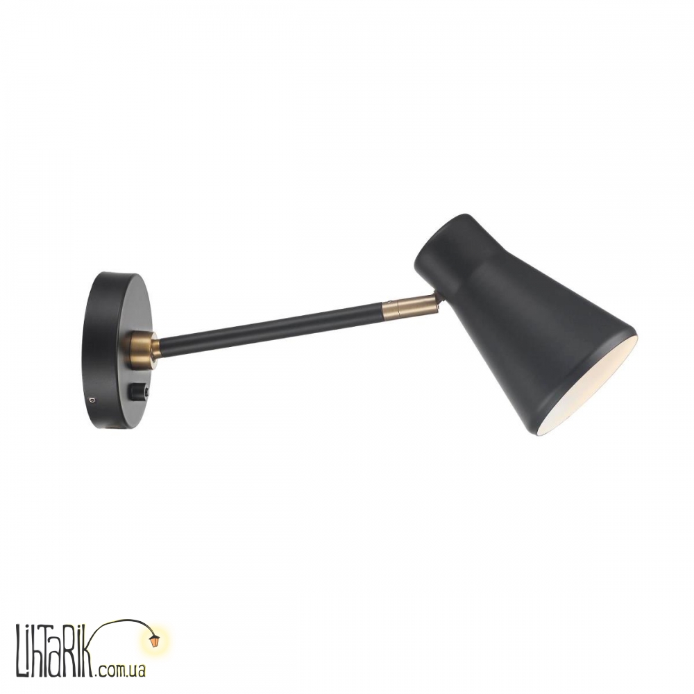 Светильник на стену, Направленный светильник конусообразной формы впишется в любую дизайнерскую среду. Модель представлена в черных тонах. Светильник изготовлен из металла высокого качества