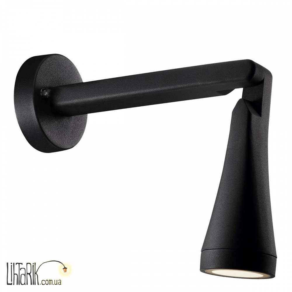 Светильник на стену конусообразной формы впишется в любую дизайнерскую среду. Модель представлена в черных тонах.