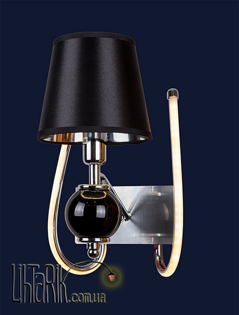 Светильник на стену с оригинальным абажуром впишется в любую дизайнерскую среду. Подходит для вашей гостиной, спальни. Модель представлена в черных тонах. Светильник изготовлен из металла высокого качества