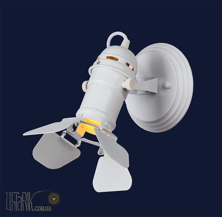 Светильник на стену, Светильник - прожектор в виде зонта или же купола впишется в любую дизайнерскую среду. Подходит для вашей гостиной, кухни, прихожей. Модель представлена в белых тонах. Светильник изготовлен из металла высокого качества