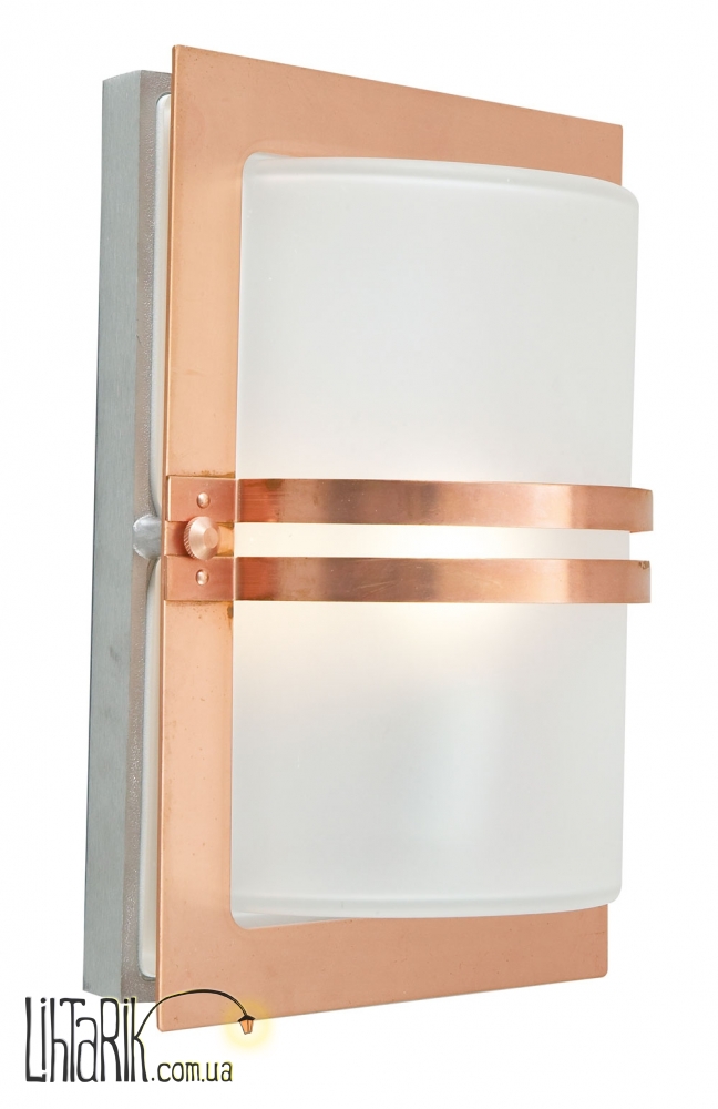 Светильник на стену с четкими ровными углами впишется в любую дизайнерскую среду. Модель представлена в матовых, медных тонах. Светильник изготовлен из металла, стекла высокого качества