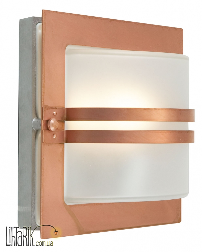 Светильник на стену с четкими ровными углами впишется в любую дизайнерскую среду. Модель представлена в матовых, медных тонах. Светильник изготовлен из металла, стекла высокого качества