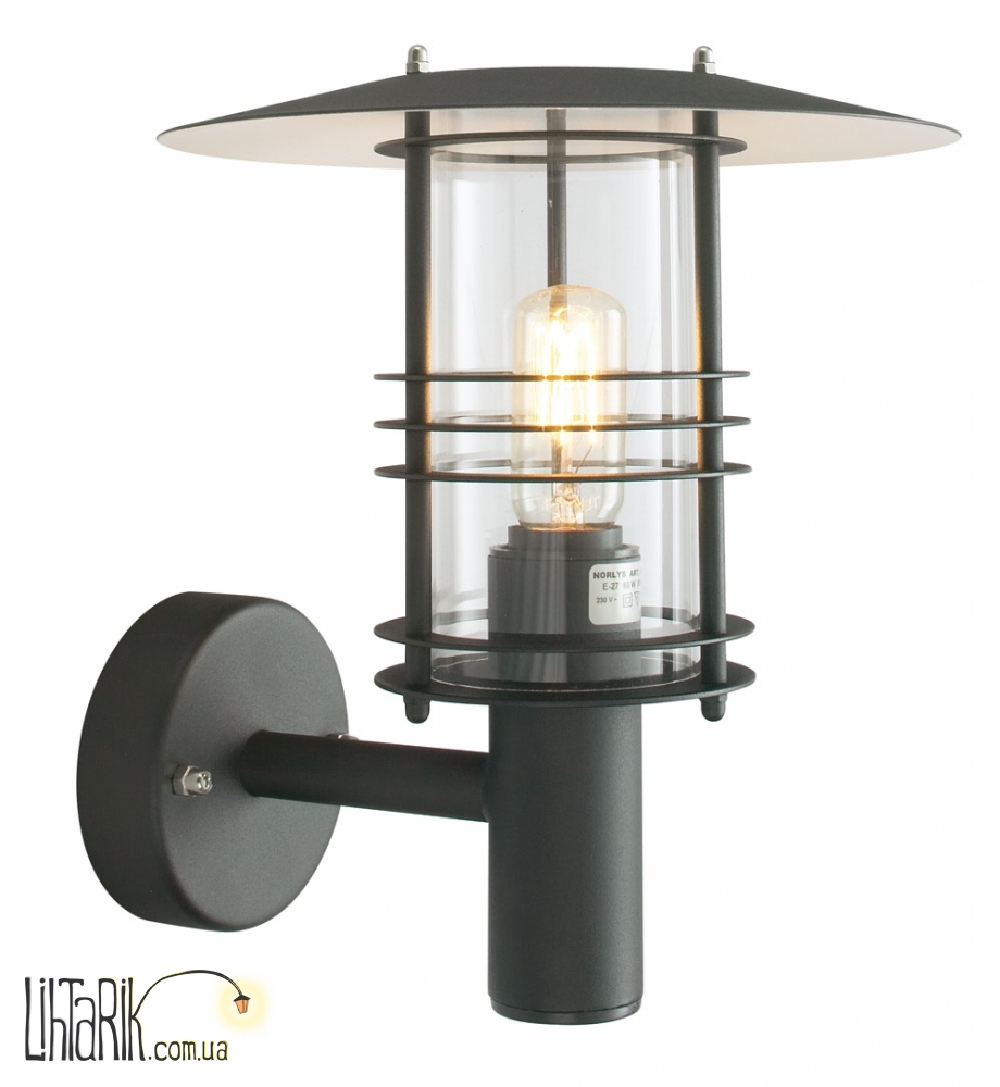 Светильник на стену как фонарь или лампада впишется в любую дизайнерскую среду. Модель представлена в прозрачных, черных тонах. Светильник изготовлен из металла высокого качества