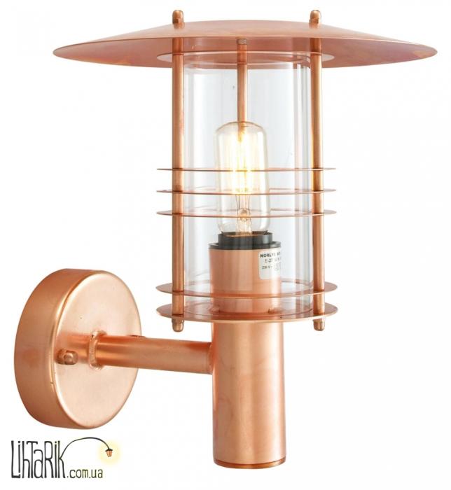 Светильник на стену как фонарь или лампада впишется в любую дизайнерскую среду. Модель представлена в медных, прозрачных тонах. Светильник изготовлен из металла высокого качества