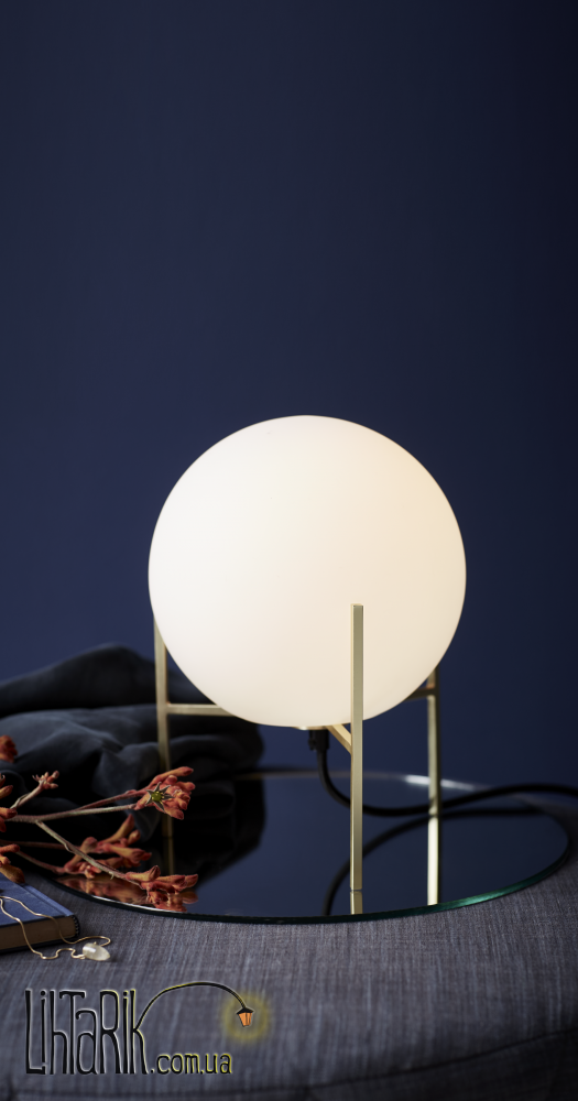 Этот настольный светильник круглого (шарообразного) вида впишется в любую дизайнерскую среду.