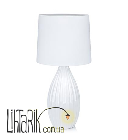 Этот настольный светильник с оригинальным абажуром впишется в любую дизайнерскую среду. Подходит для вашей гостиной, спальни. Модель представлена в белых тонах. Светильник изготовлен из керамики, ткани высокого качества