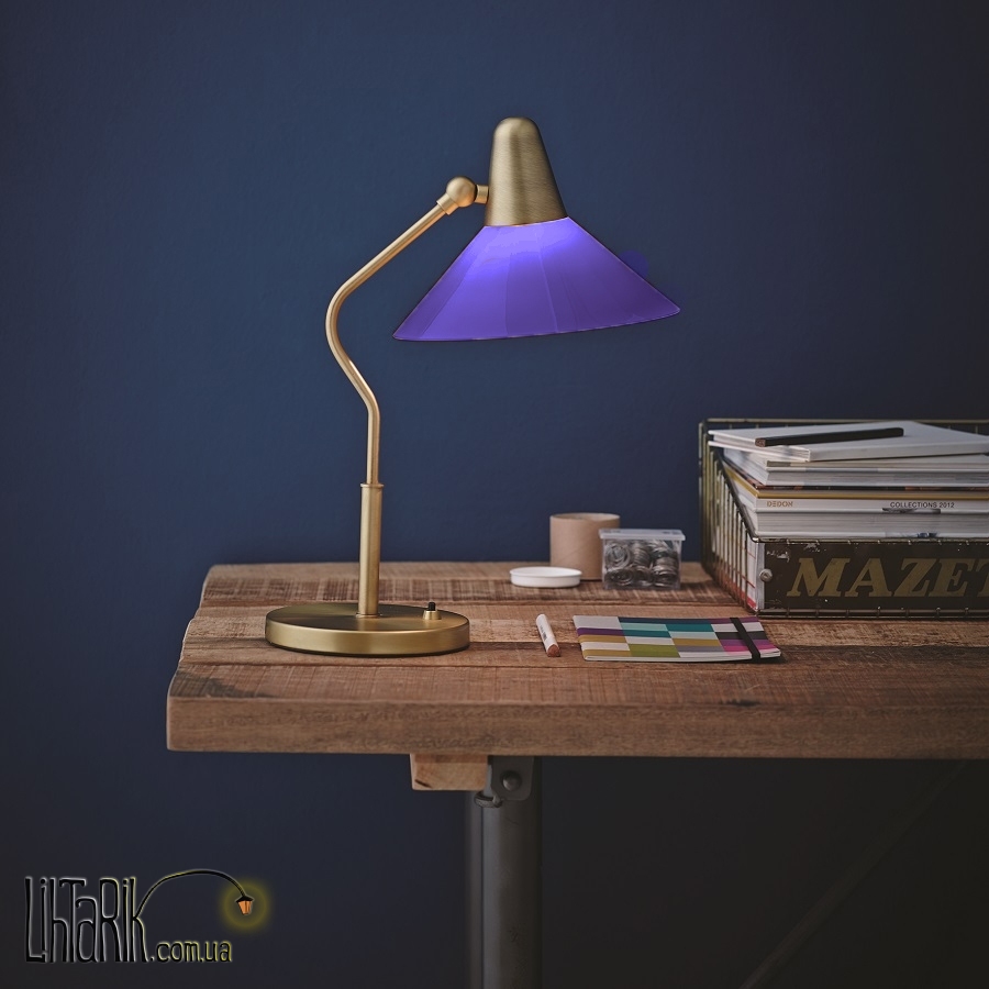 Этот настольный светильник Модель представлена в медных, синих тонах. Светильник изготовлен из металла, стекла высокого качества