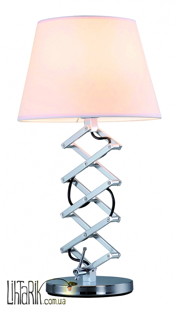 Этот настольный светильник с оригинальным абажуром впишется в любую дизайнерскую среду. Модель представлена в кремовых, хромированных тонах.