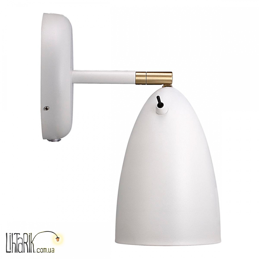 Светильник на стену, Направленный светильник конусообразной формы впишется в любую дизайнерскую среду. Модель представлена в белых тонах. Светильник изготовлен из металла высокого качества
