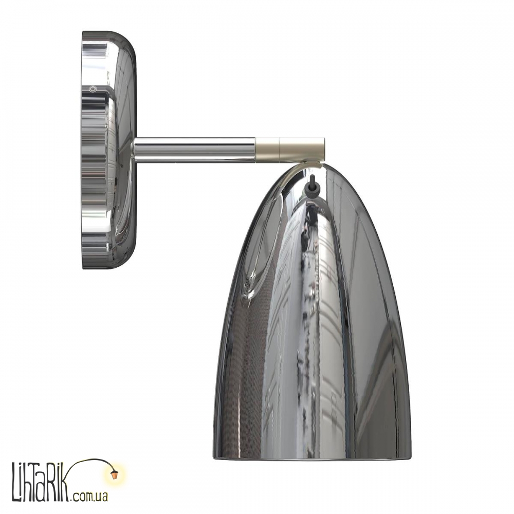 Светильник на стену, Направленный светильник конусообразной формы впишется в любую дизайнерскую среду. Модель представлена в хромированных тонах. Светильник изготовлен из металла высокого качества