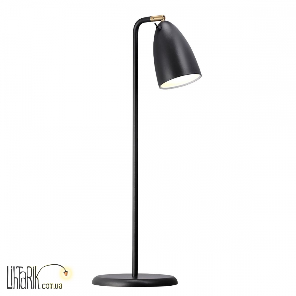 Этот настольный светильник конусообразной формы впишется в любую дизайнерскую среду. Модель представлена в черных тонах. Светильник изготовлен из металла высокого качества