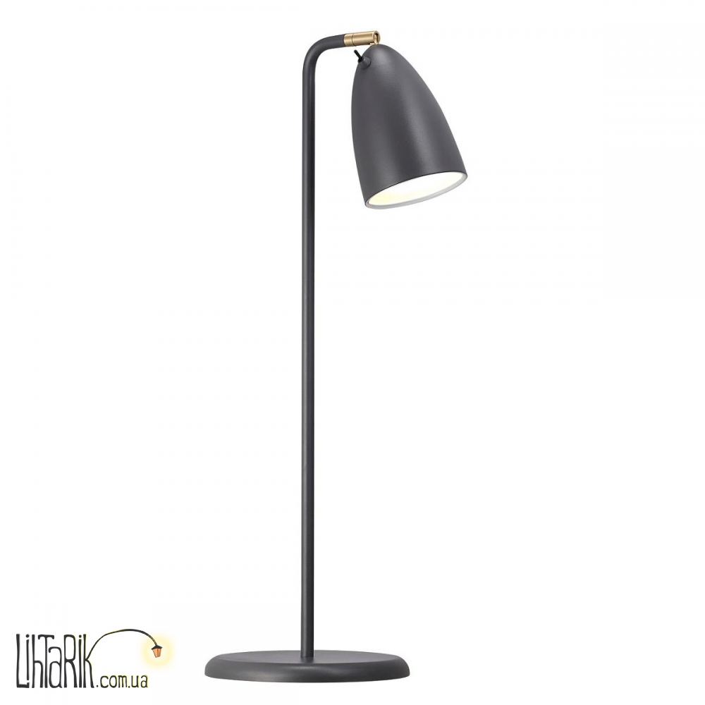 Этот настольный светильник конусообразной формы впишется в любую дизайнерскую среду. Модель представлена в серых тонах. Светильник изготовлен из металла высокого качества