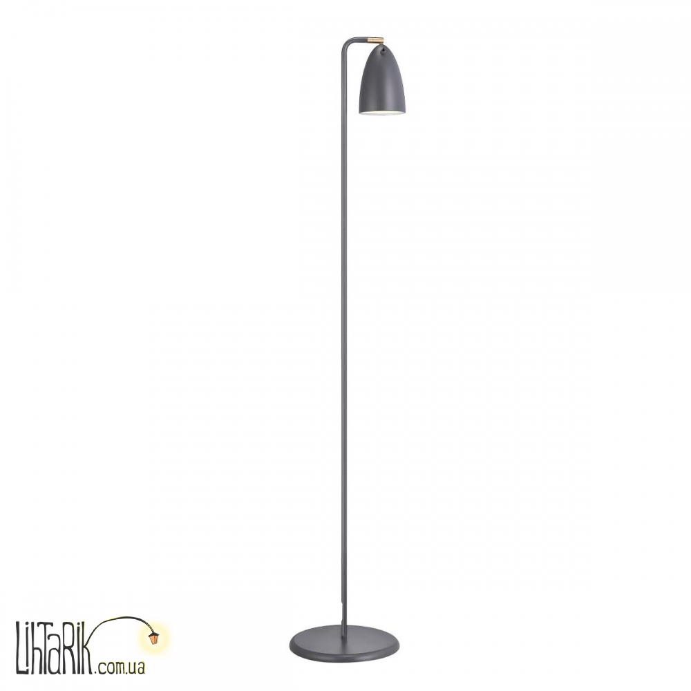 Оригинальный торшер с оригинальным абажуром, конусообразной формы впишется в любую дизайнерскую среду. Модель представлена в серых тонах. Светильник изготовлен из металла высокого качества