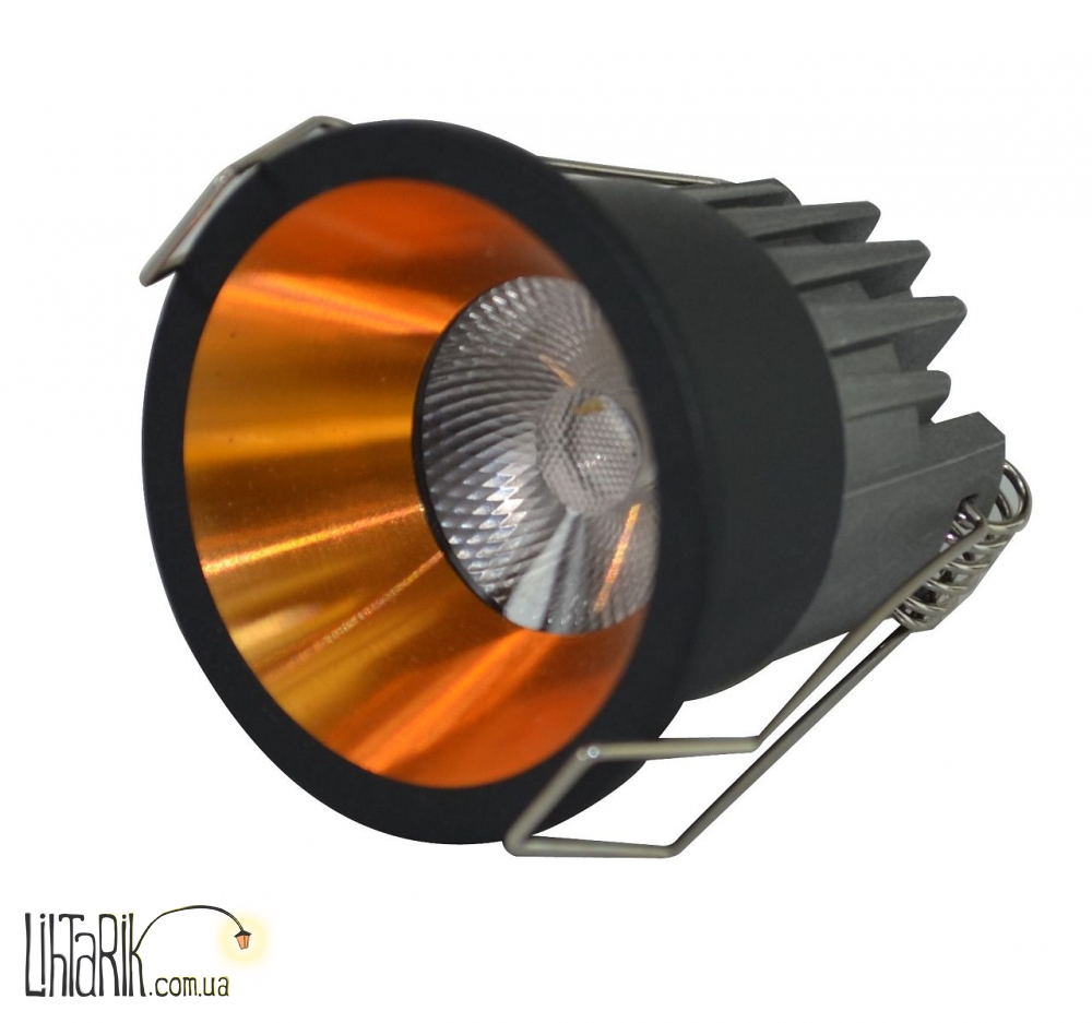 Встраиваемый светильник бочковидного вида, конусообразной формы впишется в любую дизайнерскую среду. Модель представлена в черных тонах.