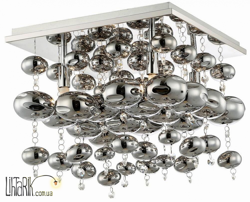 Припотолочная люстра с четкими ровными углами впишется в любую дизайнерскую среду. Модель представлена в золотых тонах. Светильник изготовлен из металла, стекла высокого качества