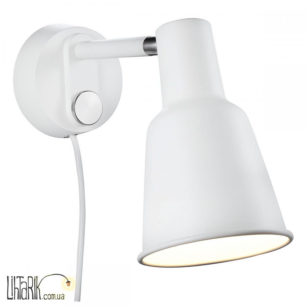 Светильник на стену, Направленный светильник конусообразной формы впишется в любую дизайнерскую среду. Модель представлена в белых тонах. Светильник изготовлен из металла высокого качества