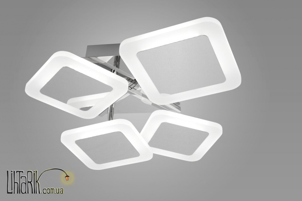 Припотолочная люстра с четкими ровными углами впишется в любую дизайнерскую среду. Модель представлена в хромированных тонах. Светильник изготовлен из акрила, металла высокого качества