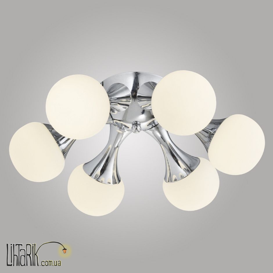 Припотолочная люстра круглого (шарообразного) вида впишется в любую дизайнерскую среду. Модель представлена в хромированных тонах. Светильник изготовлен из акрила высокого качества