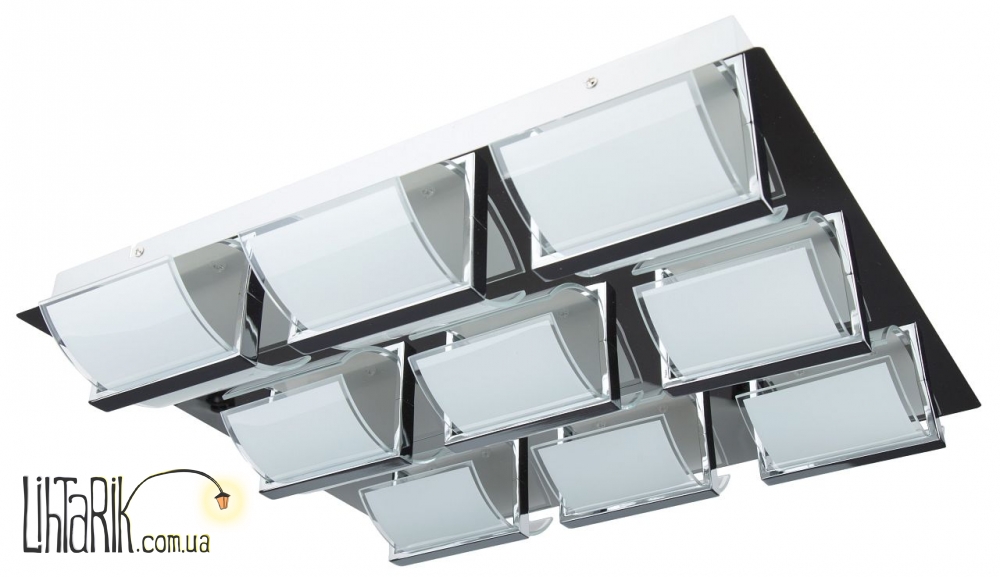 Светильник на потолок с четкими ровными углами впишется в любую дизайнерскую среду. Модель представлена в хромированных тонах. Светильник изготовлен из металла, стекла высокого качества