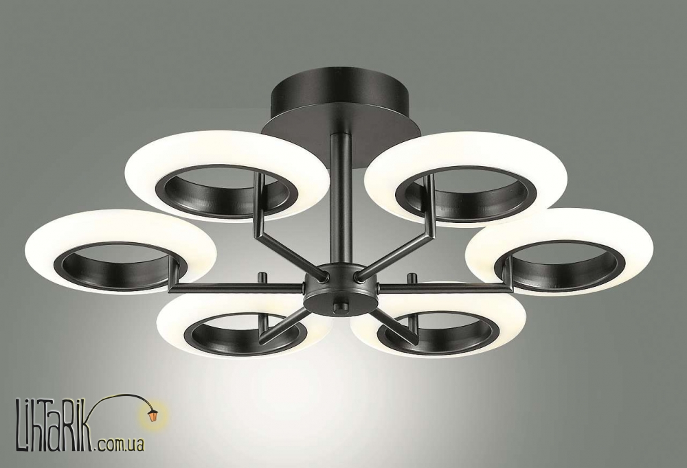Припотолочная люстра круглого (шарообразного) вида впишется в любую дизайнерскую среду. Модель представлена в черных тонах. Светильник изготовлен из акрила, металла высокого качества