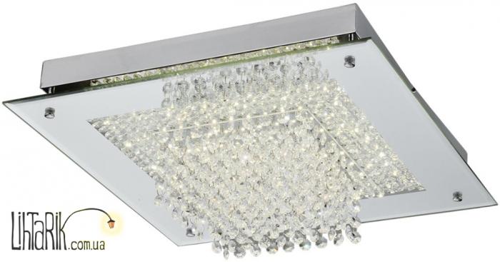 Припотолочная люстра, Светильник на потолок с четкими ровными углами впишется в любую дизайнерскую среду. Модель представлена в хромированных тонах. Светильник изготовлен из металла, стекла высокого качества