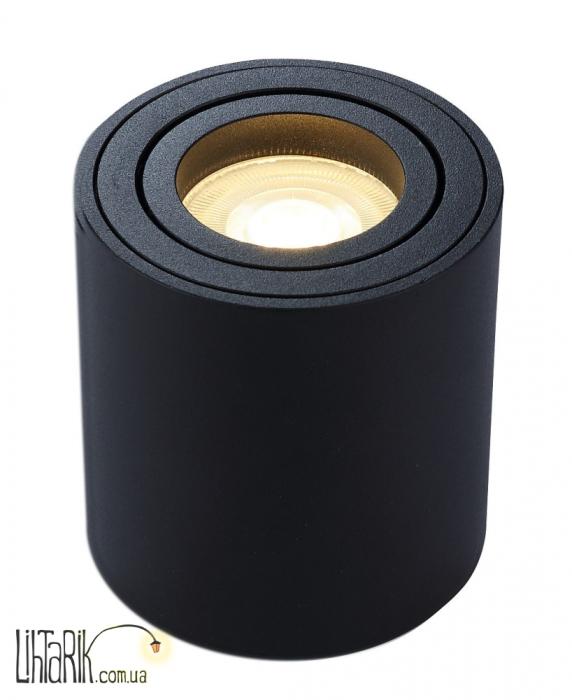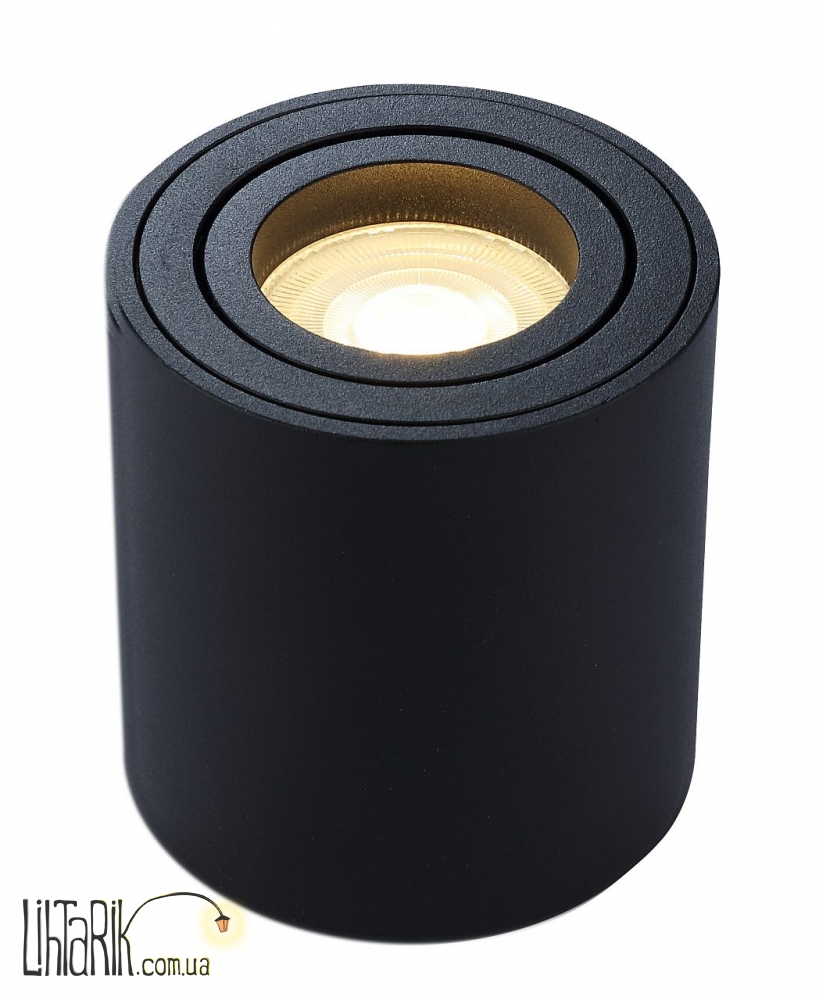 Светильник - прожектор, Направленный светильник бочковидного вида впишется в любую дизайнерскую среду. Модель представлена в черных тонах. Светильник изготовлен из металла высокого качества