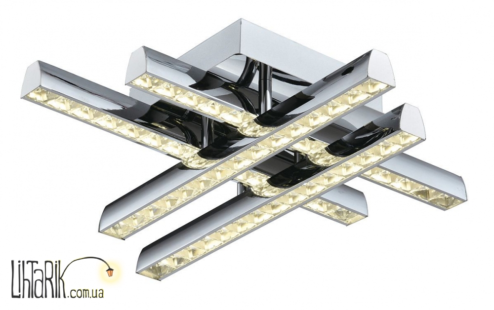 Припотолочная люстра с четкими ровными углами впишется в любую дизайнерскую среду. Модель представлена в хромированных тонах. Светильник изготовлен из металла высокого качества