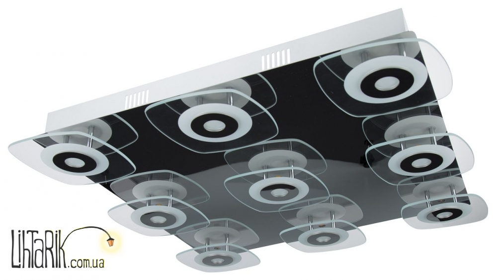Припотолочная люстра с четкими ровными углами впишется в любую дизайнерскую среду. Модель представлена в хромированных тонах. Светильник изготовлен из металла, стекла высокого качества