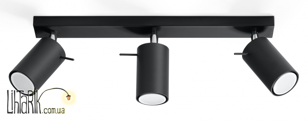 Патрон: GU10, 3 x max. 40W, 50 Hz, 220V, IP20. Лампы не в комплекте. Размеры: 15 x 45 x 8 cm Материал: металл Цвет: чёрный