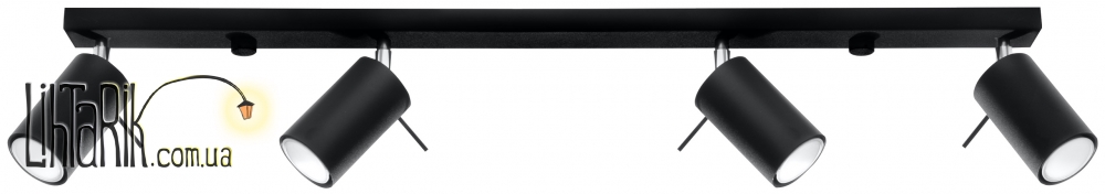Патрон: GU10, 4 x max. 40W, 50 Hz, 220V, IP20. Лампы не в комплекте. Размеры: 81 x 6 x 16 cm Материал: металл Цвет: чёрный
