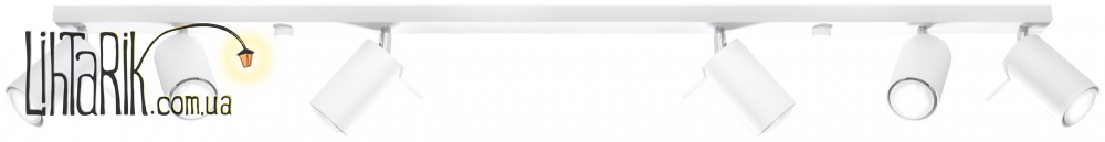 Патрон: GU10, 6 x max. 40W, 50 Hz, 220V, IP20. Лампы не в комплекте. Размеры: 117 x 6 x 16 cm Материал: металл Цвет: белый