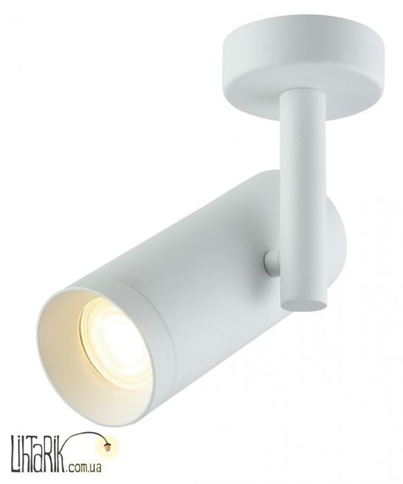 Светильник - прожектор, Направленный светильник бочковидного вида впишется в любую дизайнерскую среду. Модель представлена в белых тонах. Светильник изготовлен из металла высокого качества