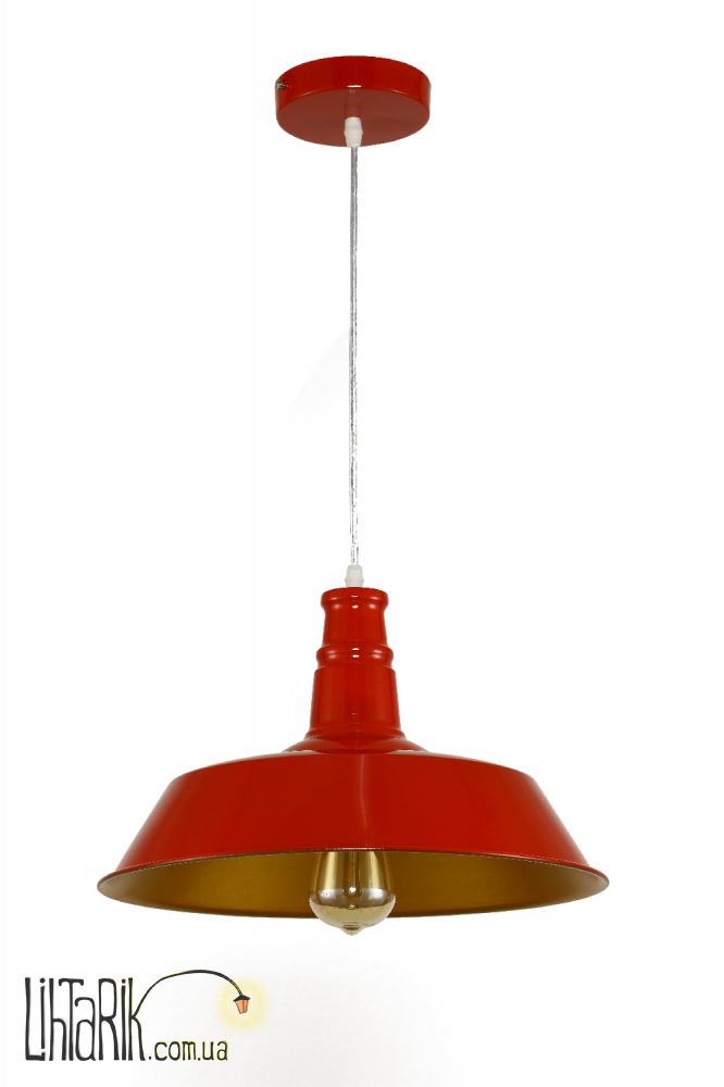 Подвесной светильник, Светильник подвесной в виде зонта или же купола, как плоская тарелка впишется в любую дизайнерскую среду. Подходит для вашей кухни, прихожей. Модель представлена в золотых, красных тонах. Светильник изготовлен из металла высокого качества