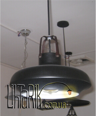 Подвесной светильник, Светильник подвесной в виде зонта или же купола, как плоская тарелка впишется в любую дизайнерскую среду. Подходит для вашей кухни, прихожей. Модель представлена в черных тонах. Светильник изготовлен из металла высокого качества