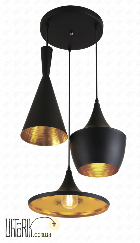 Подвесной светильник, Светильник подвесной бочковидного вида впишется в любую дизайнерскую среду. Подходит для вашей гостиной, кухни, прихожей. Модель представлена в золотых, черных тонах. Светильник изготовлен из металла высокого качества