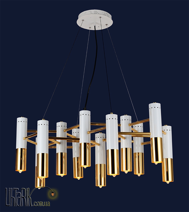 Светильник подвесной с рожковыми элементами дизайна впишется в любую дизайнерскую среду. Подходит для вашей гостиной, спальни. Модель представлена в белых, золотых тонах. Светильник изготовлен из металла высокого качества