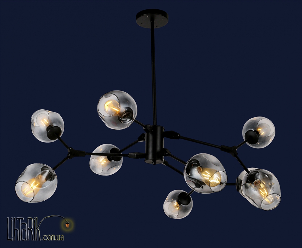 Светильник подвесной оригинальной формы, круглого (шарообразного) вида впишется в любую дизайнерскую среду. Подходит для вашей гостиной, спальни. Модель представлена в черных тонах. Светильник изготовлен из металла высокого качества