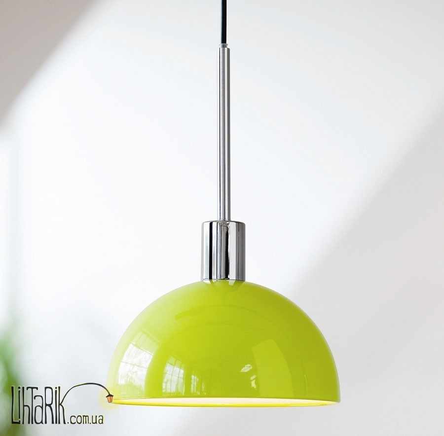 Подвесной светильник, Светильник подвесной в виде зонта или же купола впишется в любую дизайнерскую среду. Подходит для вашей кухни. Модель представлена в зеленых тонах. Светильник изготовлен из металла, пластика высокого качества