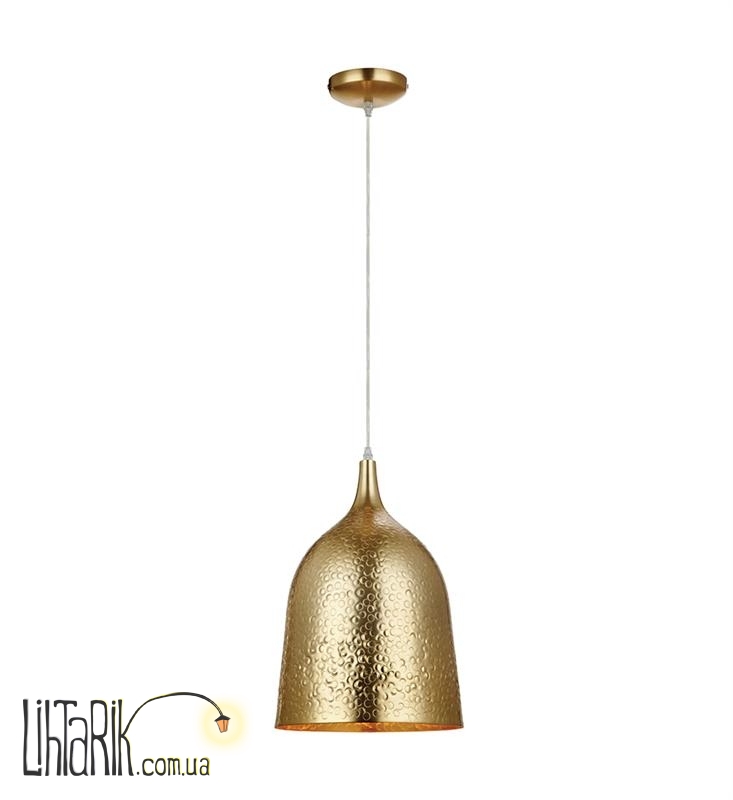 Светильник подвесной бочковидного вида впишется в любую дизайнерскую среду. Подходит для вашей кухни, прихожей. Модель представлена в золотых тонах. Светильник изготовлен из металла высокого качества
