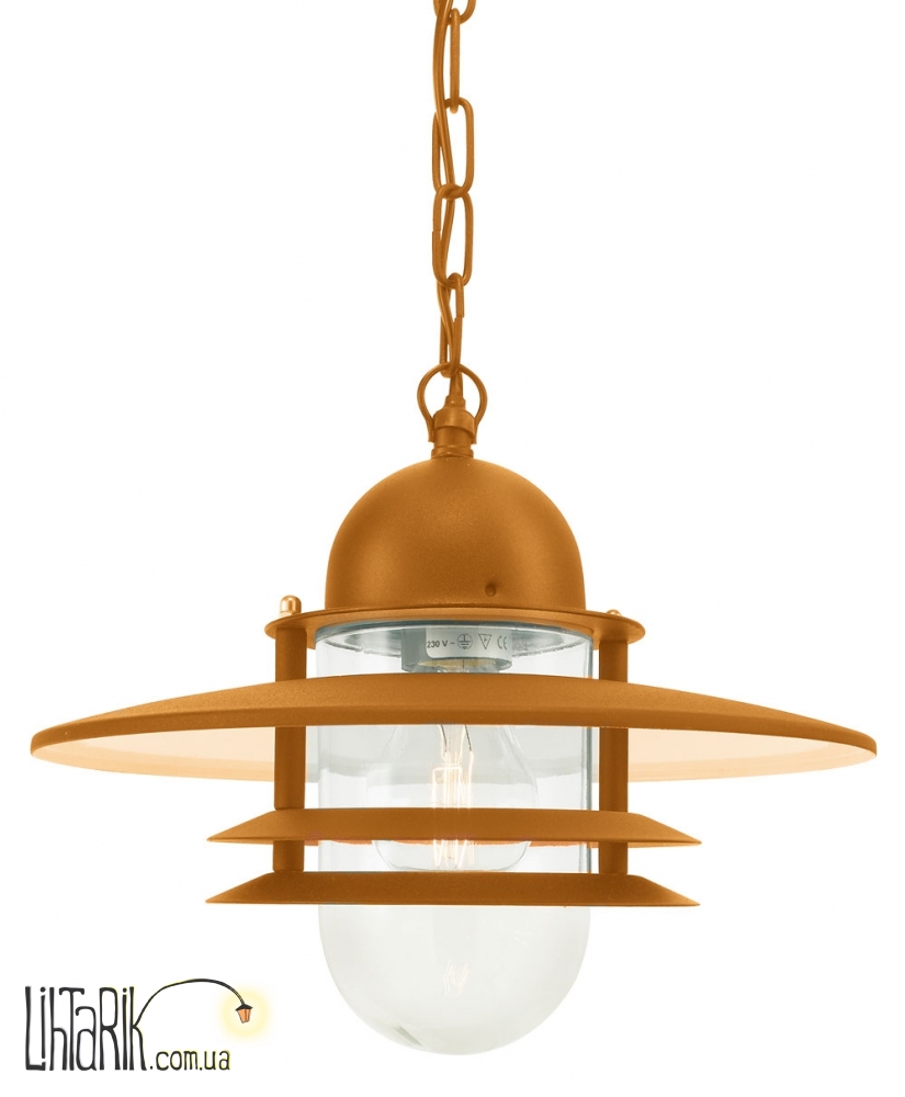 Светильник подвесной как фонарь или лампада впишется в любую дизайнерскую среду. Модель представлена в медных, прозрачных тонах. Светильник изготовлен из металла, стекла высокого качества