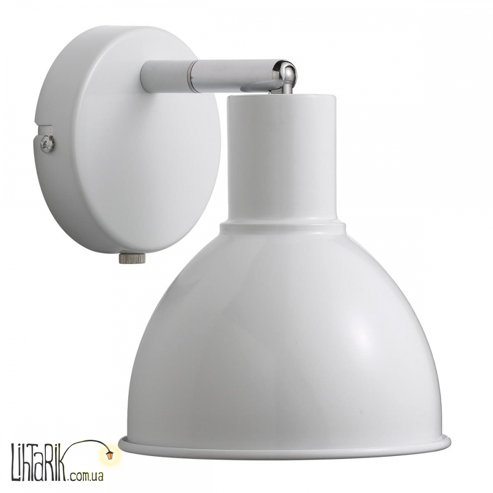 Светильник на стену, Направленный светильник конусообразной формы впишется в любую дизайнерскую среду. Модель представлена в белых тонах. Светильник изготовлен из металла высокого качества