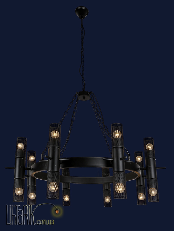 Подвесной светильник с рожковыми элементами дизайна впишется в любую дизайнерскую среду. Подходит для вашей гостиной, кухни. Модель представлена в черных тонах. Светильник изготовлен из металла высокого качества