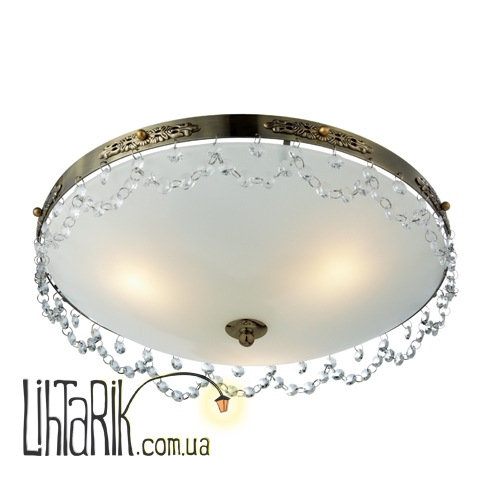 Припотолочная люстра с хрустальными подвесами впишется в любую дизайнерскую среду. Модель представлена в бронзовых, матовых тонах. Светильник изготовлен из металла, стекла высокого качества