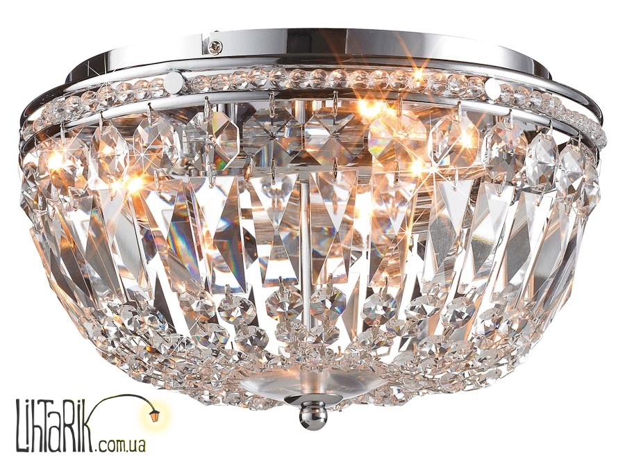 Припотолочная люстра с хрустальными подвесами впишется в любую дизайнерскую среду. Подходит для вашей гостиной. Модель представлена в прозрачных, хромированных тонах. Светильник изготовлен из металла, хрусталя высокого качества
