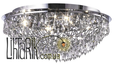 Припотолочная люстра с хрустальными подвесами впишется в любую дизайнерскую среду. Модель представлена в прозрачных, хромированных тонах. Светильник изготовлен из металла, хрусталя высокого качества