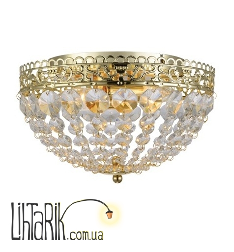 Припотолочная люстра с хрустальными подвесами впишется в любую дизайнерскую среду. Подходит для вашей гостиной. Модель представлена в золотых, прозрачных тонах. Светильник изготовлен из металла, хрусталя высокого качества